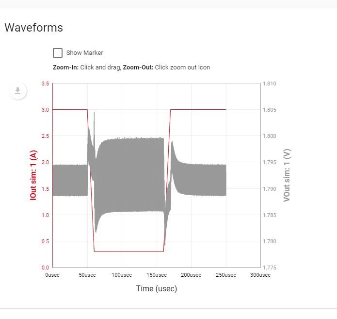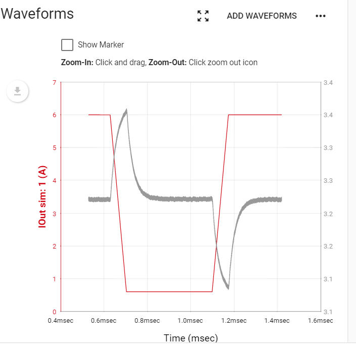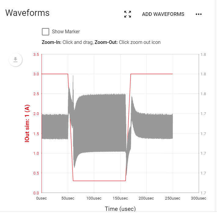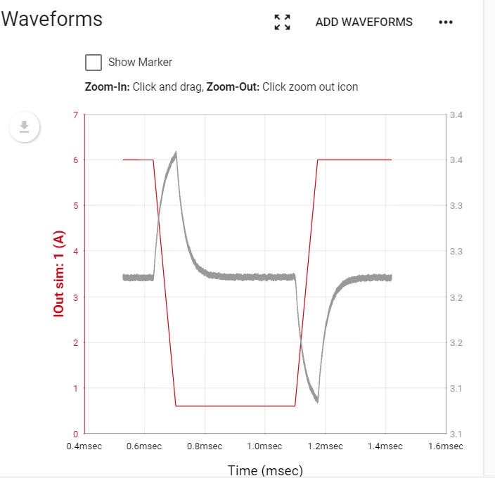 From the load transient simulation waveform below, it might not be possible to measure its stability from time domain.