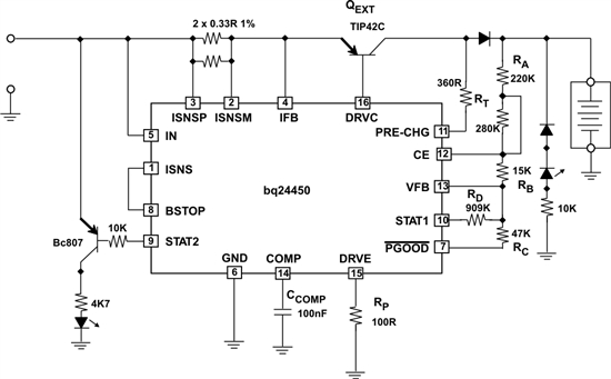 I have designed a charger using BQ24450 but i also want to know the charge status via a LED. I have connected a LED on pin 9 (stat2).