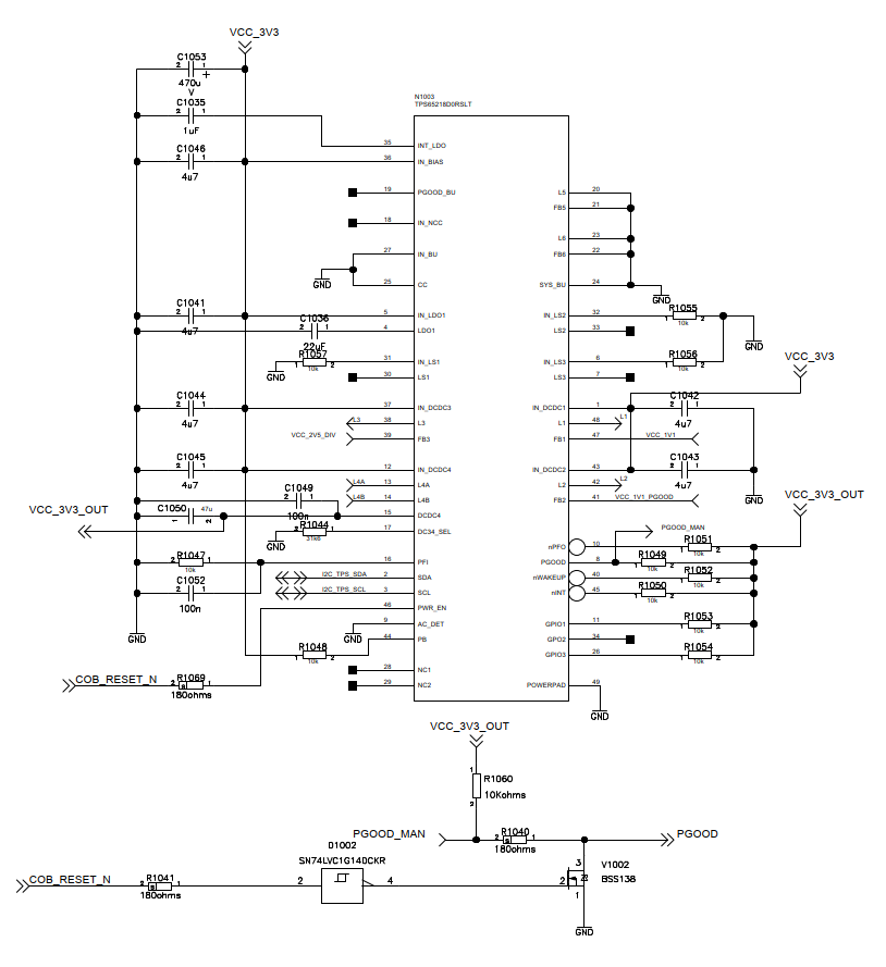 I'm using the TPS65218D0 to power a Cyclone V FPGA. The PGOOD output pin is connected to the nConfig Pin of the FPGA, to trigger a reconfiguration of the FPGA when the power is out-of-bounds. The TPS65218 is not reprogrammed using I2C, all the settings are as per default, meaning that also STRICT=1.