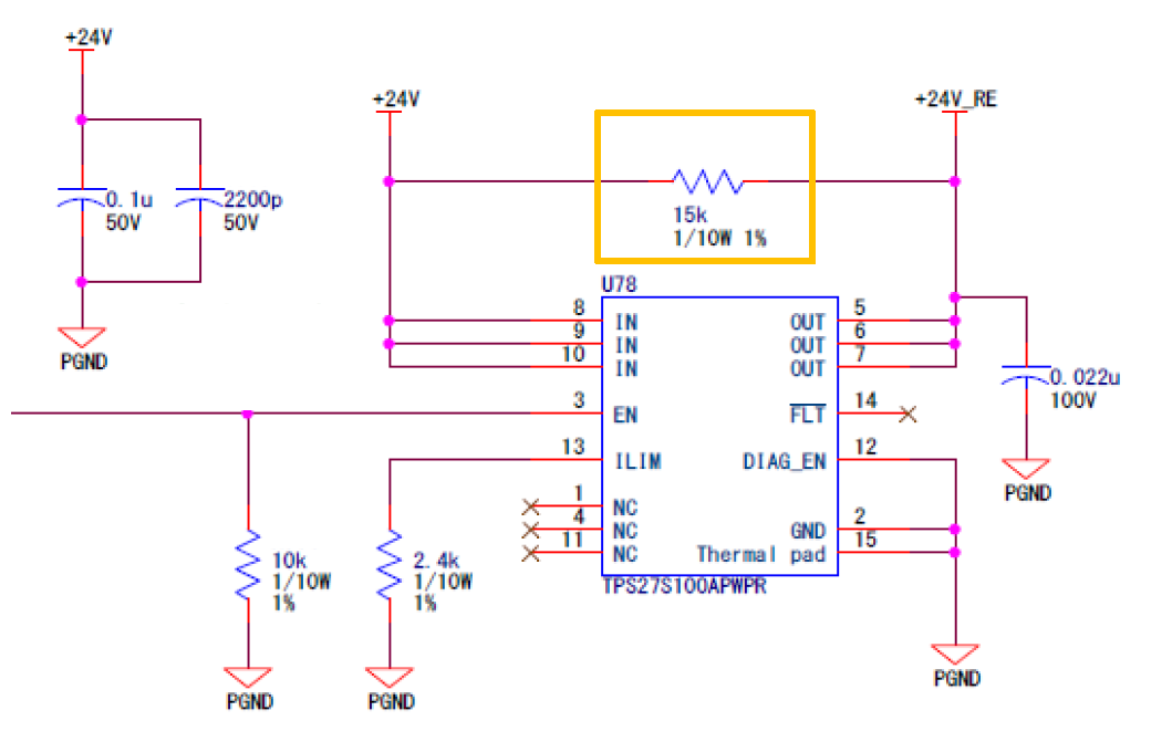 Removed 15kΩ pullup condition was not Vout float up (0V).
