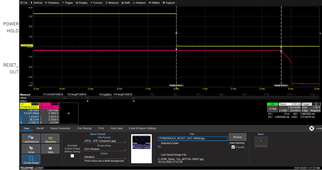 Following picture shows that RESET_OUT is still high though POWERHOLD become low but RESET_OUT become low when power is off.