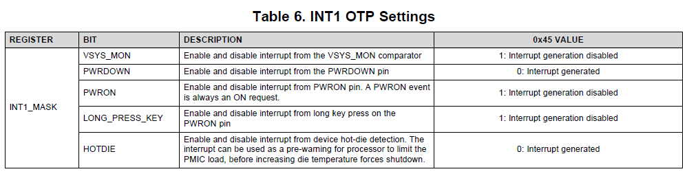 GPIO_5 is set at POWERHOLD and DEV_ON is set at 0h.
