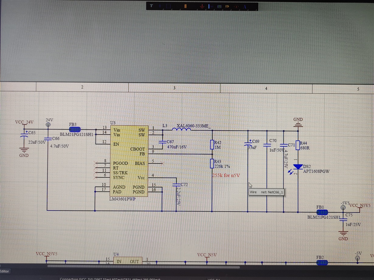 - Or When remove the LM43601 from PCB and then solder again the same LM43601 in PCB, It could work again but after 4 hours, the same issue still happen