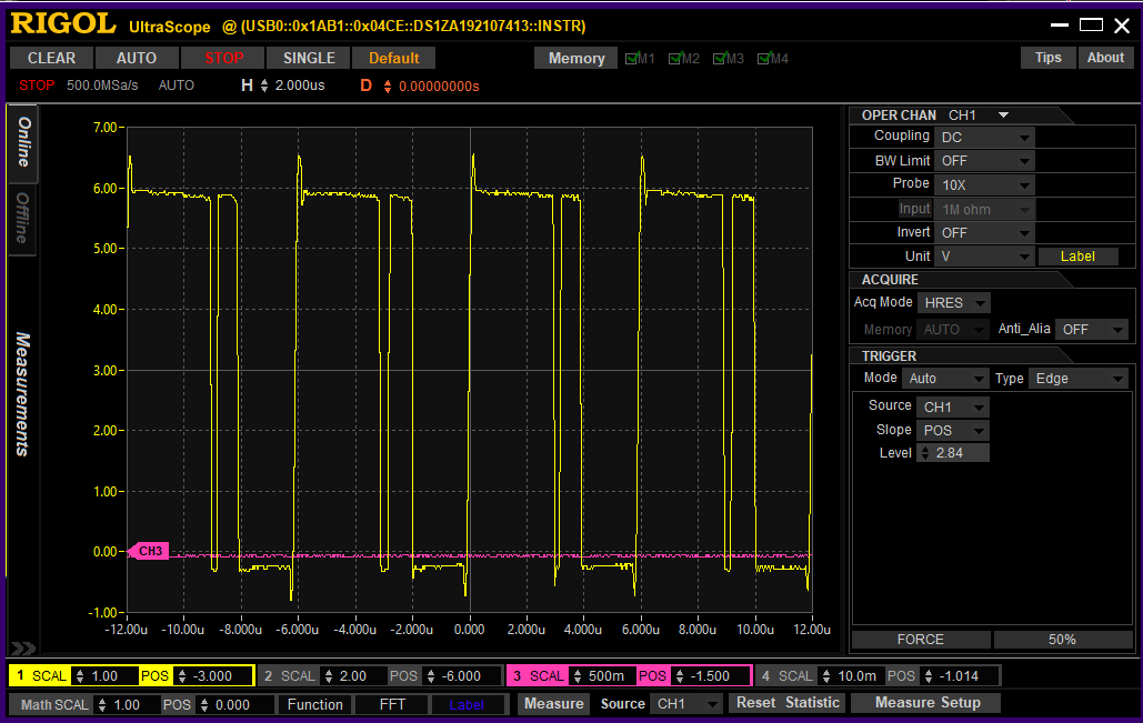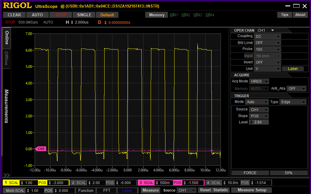 I am testing some issues with a design using the LM76002. The load regulation is not as good as it should be under certain operating conditions. The regulator is configured for Vout = 3.58V. I am finding that when Vin < 7V, and Iload in the range 400mA - 1A, the LM76002 switch node waveform changes behavior from a relatively steady 320kHz (the programmed switch frequency) to a pattern that I don't understand.. These observation are coincident with the observed degradation of load regulation so I believe these observations are related. If Vin is increased to 8V, then all of these issues disappear, and load regulation is very good across the Iload range 50mA - 1A, and switch frequency rreturns to a steady 320kHz. Also if Iload is reduced to below 400mA, then switch node waveform reverts to a steady 320kHz waveform. I have checked signals on all the pins of the LM76002 and I don't see anything unusual. PVIN looks steady, EN looks steady and well above the EN threshold, VCC (output of internal LDO) looks steady, CBOOT looks correct (always ~3V above switch node). I would appreciate if you could provide me some hints as to what maybe causing the above loss of load regulation (Vout drops by about 200mV)? Some things I note about the design (this is not my design) are that L seems a bit on the low side (10uH), feedback network resistors are quite high (RFBT = 1Mohm, RFBB - 402Kohm - I think the original designer was trying to achieve low quiescent current), CFB = 15pF. Please find attached a trace capture from the oscilloscope (yellow trace is the MOSFET switch node voltage) for Vin = 6V, Iload = 1A. Note that the switch node waveform seems to have very unsteady duty ratio pattern. Thank you, David
