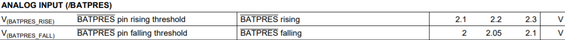 I have a battery connected - but its voltage is below the #BATPRES "threshold". Threshold set at 3 V - battery is currently 2.85 V.