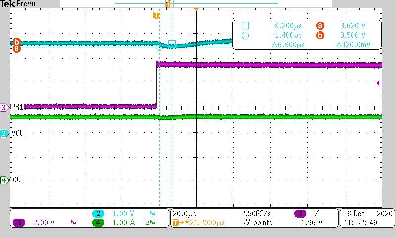 Configuration follow datasheet TPS2121 manual switchover, but it shows large dip, ~ 125us, doesn't get result as datasheet mentioned 5us fast switch. Could you help check about this?