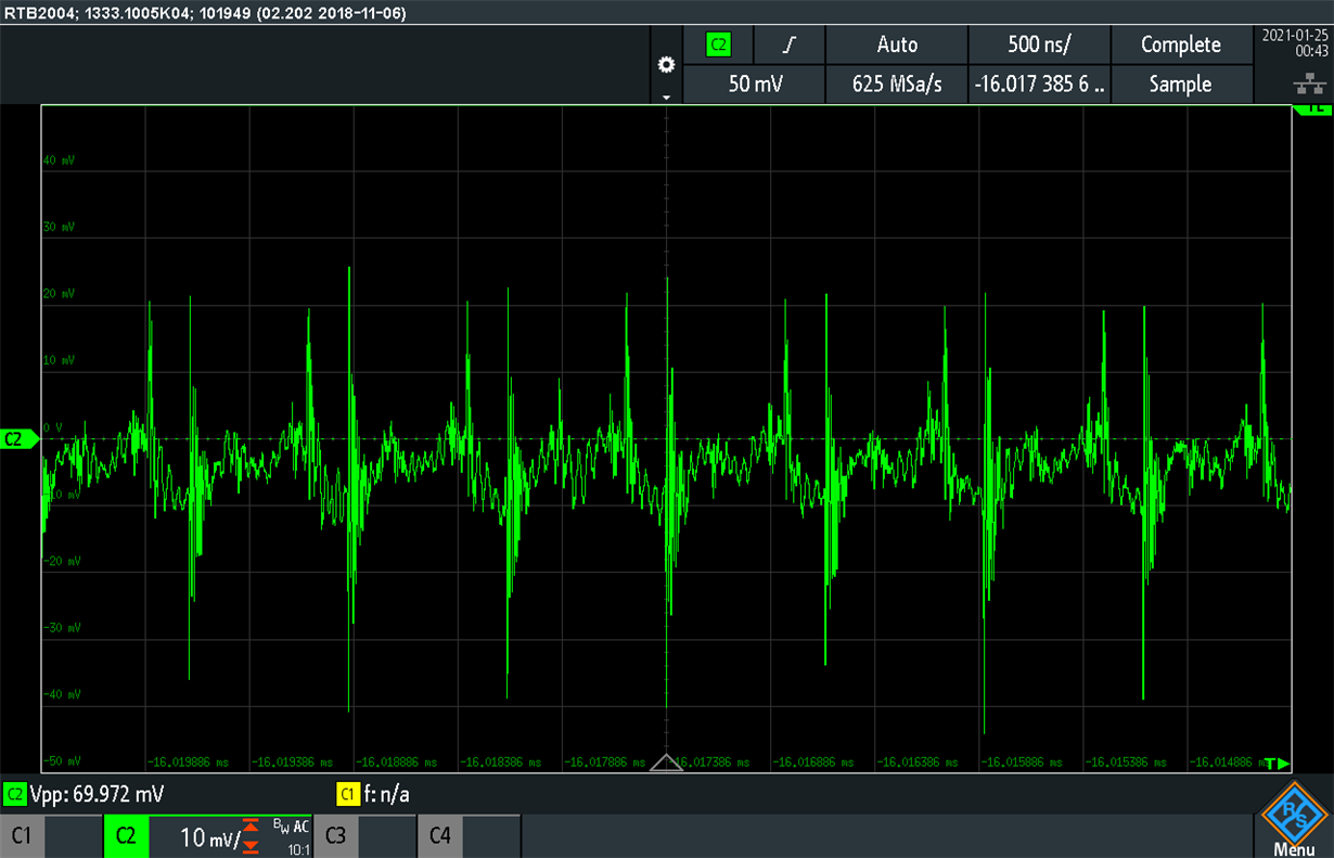 6) FBN remains about ground with about +/-40mV noise as shown in capture below