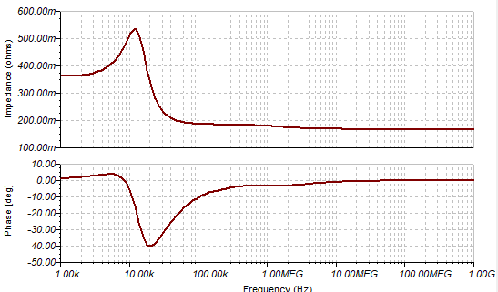 I am simulating output impedance of the TPS54160 power supply, and I am seeing results which do not match what I would expect.
