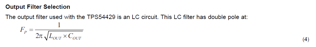 The formula for calculating the frequency Fp with L1 and C8 + C9 of Output Filter Selection is described in the data sheet.