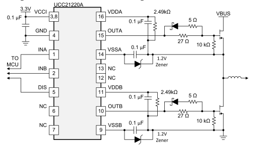 Accroding to the application manual,how many volts is the VBUS limited when I'm using UCC21222 as the following circle.