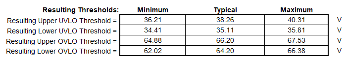 On LM5069_Design_Calculator_REV_C excel file, we can see the following resulting Thresholds: