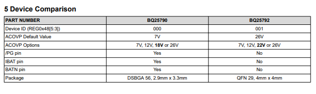 My customer is working with BQ25790. While checking another component they found a comparison between BQ25790 & BQ25792 on BQ25792 datasheet page 3.
