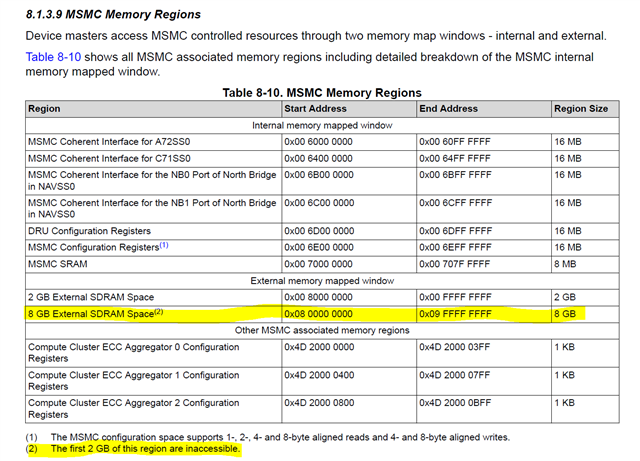 1. why "The SOC address space 0x800000000 - 0x87FFFFFFF is permanently disabled on TDA4VM. There is no software configuration to change this."