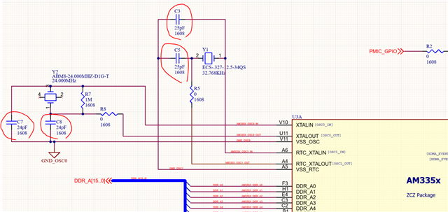 Capacitor values that you used looks fine, although you are using different crystals compared to EVM schematics.