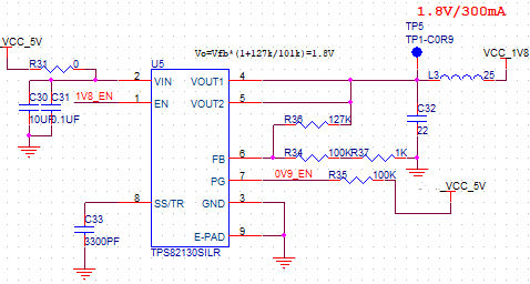 2. The output of VCC_1V8 is normal, but 0V9_EN is pulled down to 1.4V;