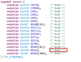 - especially for these eCAP findings: what is correct, the TRM (all 32bit registers) or the code (mixed 16 and 32bit registers)?
