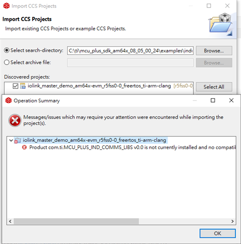 After installing CCS v12 and the following tools, import CCS Porject has the following error. Do you have any suggestions to solve this problem?
