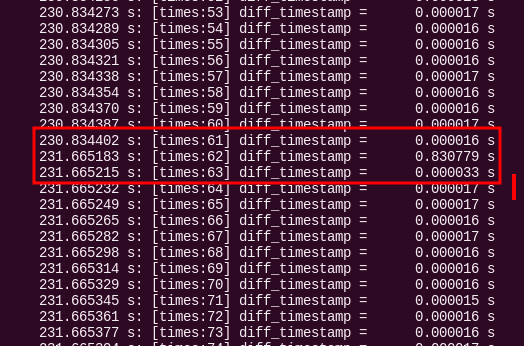 j721s2-evm:/opt/vision_apps# sh run_app_multi_cam.sh APP: Init ... !!! MEM: Init ... !!! MEM: Initialized DMA HEAP (fd=4) !!! MEM: Init ... Done !!! IPC: Init ... !!! IPC: Init ... Done !!! REMOTE_SERVICE: Init ... !!! REMOTE_SERVICE: Init ... Done !!! 230.805060 s: GTC Frequency = 200 MHz APP: Init ... Done !!! 230.827642 s: VX_ZONE_INIT:Enabled 230.827679 s: VX_ZONE_ERROR:Enabled 230.827693 s: VX_ZONE_WARNING:Enabled 230.830369 s: VX_ZONE_INIT:[tivxInitLocal:130] Initialization Done !!! 230.833210 s: VX_ZONE_INIT:[tivxHostInitLocal:93] Initialization Done for HOST !!! 230.833312 s: [times:0] diff_timestamp = 230.833305 s 230.833332 s: [times:1] diff_timestamp = 0.000024 s 230.833350 s: [times:2] diff_timestamp = 0.000018 s 230.833367 s: [times:3] diff_timestamp = 0.000017 s 230.833383 s: [times:4] diff_timestamp = 0.000016 s 230.833399 s: [times:5] diff_timestamp = 0.000016 s 230.833415 s: [times:6] diff_timestamp = 0.000016 s 230.833431 s: [times:7] diff_timestamp = 0.000016 s 230.833447 s: [times:8] diff_timestamp = 0.000016 s 230.833463 s: [times:9] diff_timestamp = 0.000016 s 230.833479 s: [times:10] diff_timestamp = 0.000016 s 230.833495 s: [times:11] diff_timestamp = 0.000016 s 230.833511 s: [times:12] diff_timestamp = 0.000016 s 230.833527 s: [times:13] diff_timestamp = 0.000016 s 230.833543 s: [times:14] diff_timestamp = 0.000016 s 230.833559 s: [times:15] diff_timestamp = 0.000016 s 230.833576 s: [times:16] diff_timestamp = 0.000017 s 230.833592 s: [times:17] diff_timestamp = 0.000016 s 230.833608 s: [times:18] diff_timestamp = 0.000016 s 230.833624 s: [times:19] diff_timestamp = 0.000017 s 230.833641 s: [times:20] diff_timestamp = 0.000016 s 230.833657 s: [times:21] diff_timestamp = 0.000016 s 230.833674 s: [times:22] diff_timestamp = 0.000017 s 230.833689 s: [times:23] diff_timestamp = 0.000015 s 230.833706 s: [times:24] diff_timestamp = 0.000017 s 230.833722 s: [times:25] diff_timestamp = 0.000016 s 230.833738 s: [times:26] diff_timestamp = 0.000016 s 230.833754 s: [times:27] diff_timestamp = 0.000017 s 230.833771 s: [times:28] diff_timestamp = 0.000016 s 230.833787 s: [times:29] diff_timestamp = 0.000017 s 230.833804 s: [times:30] diff_timestamp = 0.000016 s 230.833820 s: [times:31] diff_timestamp = 0.000016 s 230.833928 s: [times:32] diff_timestamp = 0.000107 s 230.833946 s: [times:33] diff_timestamp = 0.000019 s 230.833963 s: [times:34] diff_timestamp = 0.000017 s 230.833979 s: [times:35] diff_timestamp = 0.000016 s 230.833995 s: [times:36] diff_timestamp = 0.000016 s 230.834011 s: [times:37] diff_timestamp = 0.000017 s 230.834028 s: [times:38] diff_timestamp = 0.000016 s 230.834044 s: [times:39] diff_timestamp = 0.000016 s 230.834060 s: [times:40] diff_timestamp = 0.000016 s 230.834077 s: [times:41] diff_timestamp = 0.000017 s 230.834093 s: [times:42] diff_timestamp = 0.000016 s 230.834109 s: [times:43] diff_timestamp = 0.000016 s 230.834125 s: [times:44] diff_timestamp = 0.000017 s 230.834142 s: [times:45] diff_timestamp = 0.000016 s 230.834158 s: [times:46] diff_timestamp = 0.000016 s 230.834174 s: [times:47] diff_timestamp = 0.000016 s 230.834191 s: [times:48] diff_timestamp = 0.000017 s 230.834207 s: [times:49] diff_timestamp = 0.000016 s 230.834224 s: [times:50] diff_timestamp = 0.000017 s 230.834240 s: [times:51] diff_timestamp = 0.000016 s 230.834256 s: [times:52] diff_timestamp = 0.000016 s 230.834273 s: [times:53] diff_timestamp = 0.000017 s 230.834289 s: [times:54] diff_timestamp = 0.000016 s 230.834305 s: [times:55] diff_timestamp = 0.000016 s 230.834321 s: [times:56] diff_timestamp = 0.000016 s 230.834338 s: [times:57] diff_timestamp = 0.000017 s 230.834354 s: [times:58] diff_timestamp = 0.000016 s 230.834370 s: [times:59] diff_timestamp = 0.000016 s 230.834387 s: [times:60] diff_timestamp = 0.000017 s 230.834402 s: [times:61] diff_timestamp = 0.000016 s 231.665183 s: [times:62] diff_timestamp = 0.830779 s 231.665215 s: [times:63] diff_timestamp = 0.000033 s 231.665232 s: [times:64] diff_timestamp = 0.000017 s 231.665249 s: [times:65] diff_timestamp = 0.000017 s 231.665265 s: [times:66] diff_timestamp = 0.000016 s 231.665282 s: [times:67] diff_timestamp = 0.000017 s 231.665298 s: [times:68] diff_timestamp = 0.000016 s 231.665314 s: [times:69] diff_timestamp = 0.000016 s 231.665329 s: [times:70] diff_timestamp = 0.000016 s 231.665345 s: [times:71] diff_timestamp = 0.000015 s 231.665361 s: [times:72] diff_timestamp = 0.000016 s 231.665377 s: [times:73] diff_timestamp = 0.000016 s 231.665394 s: [times:74] diff_timestamp = 0.000017 s 231.665410 s: [times:75] diff_timestamp = 0.000016 s 231.665426 s: [times:76] diff_timestamp = 0.000016 s 231.665441 s: [times:77] diff_timestamp = 0.000016 s 231.665457 s: [times:78] diff_timestamp = 0.000015 s 231.665473 s: [times:79] diff_timestamp = 0.000016 s 231.665489 s: [times:80] diff_timestamp = 0.000016 s 231.665505 s: [times:81] diff_timestamp = 0.000016 s 231.665521 s: [times:82] diff_timestamp = 0.000016 s 231.665537 s: [times:83] diff_timestamp = 0.000016 s 231.665553 s: [times:84] diff_timestamp = 0.000016 s 231.665570 s: [times:85] diff_timestamp = 0.000017 s 231.665586 s: [times:86] diff_timestamp = 0.000016 s 231.665602 s: [times:87] diff_timestamp = 0.000016 s 231.665618 s: [times:88] diff_timestamp = 0.000016 s 231.665634 s: [times:89] diff_timestamp = 0.000016 s 231.665650 s: [times:90] diff_timestamp = 0.000016 s 231.665666 s: [times:91] diff_timestamp = 0.000016 s 231.665681 s: [times:92] diff_timestamp = 0.000016 s 231.665697 s: [times:93] diff_timestamp = 0.000016 s 231.665713 s: [times:94] diff_timestamp = 0.000016 s 231.665729 s: [times:95] diff_timestamp = 0.000015 s 231.665745 s: [times:96] diff_timestamp = 0.000016 s 231.665761 s: [times:97] diff_timestamp = 0.000016 s 231.665777 s: [times:98] diff_timestamp = 0.000016 s 231.665793 s: [times:99] diff_timestamp = 0.000016 s 231.665809 s: [times:100] diff_timestamp = 0.000016 s 231.665862 s: [times:101] diff_timestamp = 0.000016 s 231.665883 s: [times:10