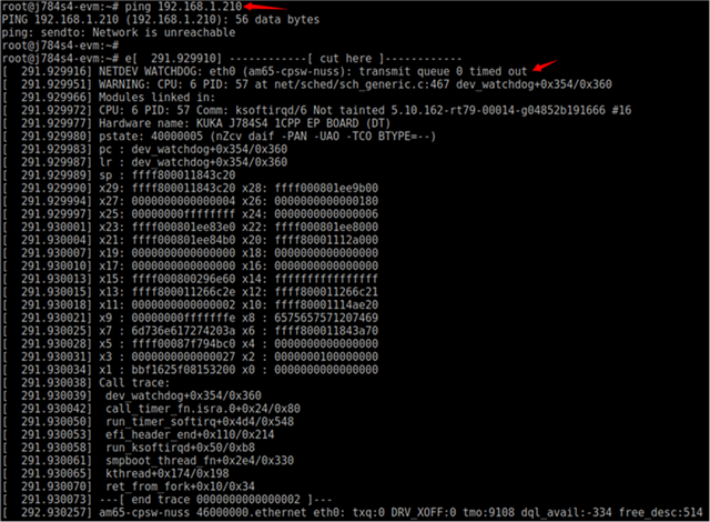 However, when we ping to PC, cpsw driver report a crash, showing as below.