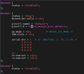 Now, we need to modify the device tree file to make mcasp the I2S master device and tlv320aic3106 the I2S slave device. How can we make this modification?