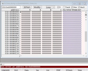 Our customer plans to use OCRAM at address 0x60080000 in the MCU21 of TDA4AL. However, they found that when they put the data segment into OCRAM, the MCU21 stops running. When we accessed it through Lauterbach, we saw that all the data in OCRAM was zero. Directly writing data through Lauterbach resulted in a bus error, as shown in the figure below. They would like to know if there is any pre-configuration required for using OCRAM? Thanks