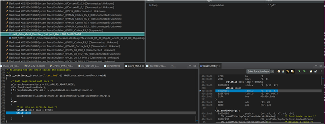 And also using JTAG debugger (loading the sbl_boot_app_mmcsd_j721e_evm_mcu1_0_freertos_TestApp_release) the following picture appears:
