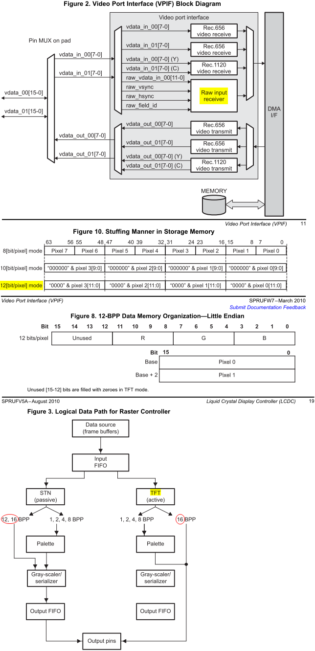 Is my understanding on VPIF and LCDC correct? If 12-bit TFT mode is supported, is it the only way to output camera video input on LCD? If 12-bit TFT mode is not supported, does it mean via TFT LCD there is no way to display camera video input?