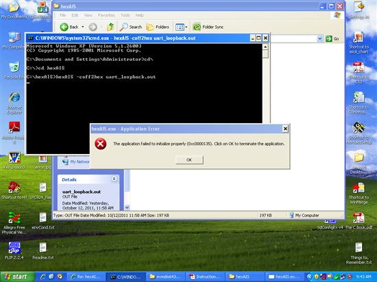 When I copy the hexAIS folder in c:\ with my .out file and run the .exe command i get the following error.