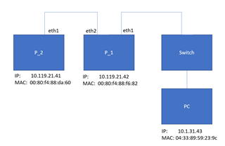 We are facing a peculiar issue in a network setup. Two products's P_1 and P_2 are connected in daisy-chain , P_1 is connected to my computer via