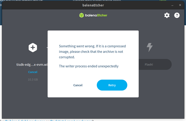 Due to the latest version(V1.19.x) Balena etcher have some bugs will cause flash error report. regarding this error, pls use old version Balena tool to work around. below is the download link for V1.7.x, I have validated V1.7.9 and V1.5.22. Just for your reference.