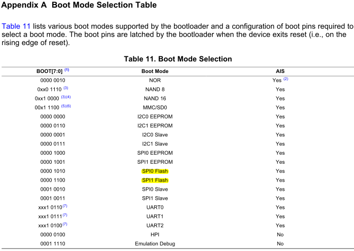 I am considering using a SPI Flash to store the boot rom code, and I found within the two documents above, only the first contains requirements on SPI Flash: