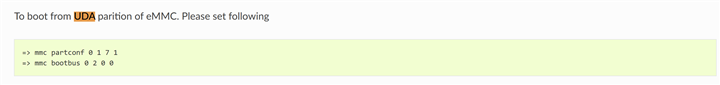 I want to boot from eMMC UDA partitions in my J784S4 custom board.As part of that I am writing boot contents to first partition of UDA i.e,/dev/mmcblk0p1 nd also enabled PARTCONFIG to user mode as shown in attached figure.