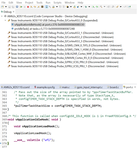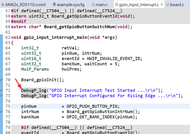 it can run over Board_gpioinit(). but doesn't return from DebugP_log()