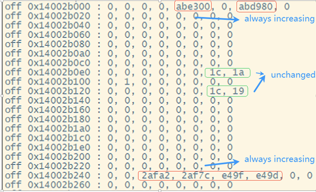 offset=0x10/0x18/0x248/0x24c/0x250/0x254 these values are always incremented send and receive data with module B.