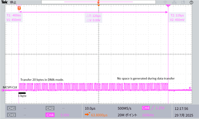 There is a difference in data transfer between MCSPI's DMA mode and Interrupt mode.