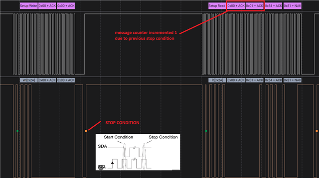 We can able to write and read. But on looking wave form we are seeing 2 stop condition.