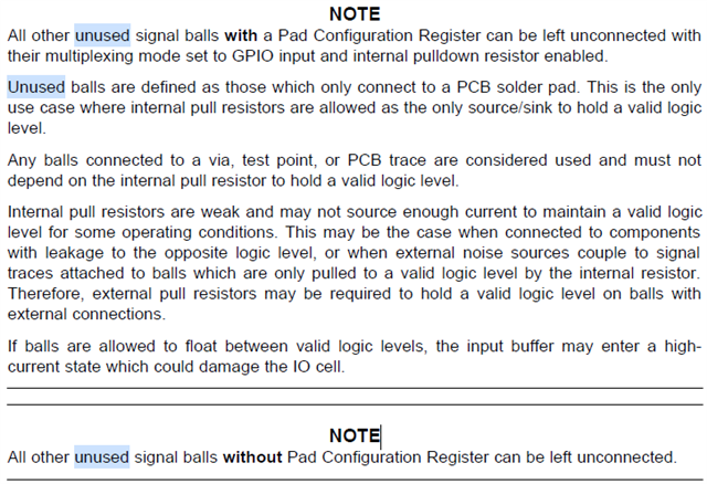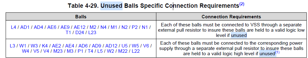 I have a question about 66AK2G12 unused pins mentioned in Table 4-29,I don't use these pins, so I want to left these pins float, if I left these pins unconnected, What will happen?