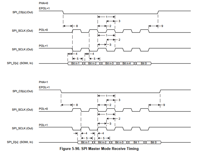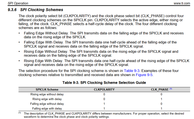 1. Why are the clock timings for data transmission and reception different in the manuals of ARM and DSP chips with the same SPI polarity/phase configuration?