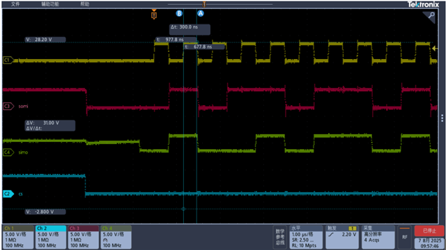 3.The SPI waveform of the current configuration is as follows. Please check if there are any abnormalities? What is the standard waveform?