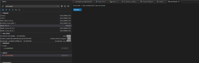 After debugging sbl_null_am275x-evm_wkup-r5fss0-0_freertos_ti-arm-clang project, it stalls during SciClient initialization.