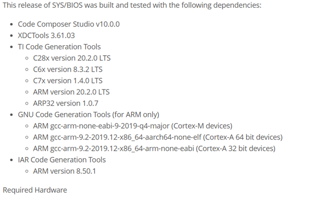 CCS 12.8.1, SYS/BIOS 6.83.0.18.