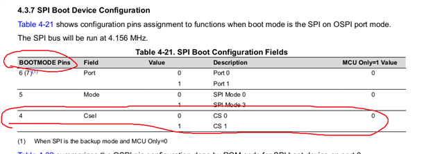 If primary and backup boot modes are set to SPI on normal bootmode. What is the default Csel that is selected for backup boot mode since it only looks like you can toggle bootmode[7] which controls ports. Is it defaulted to CS0? Is there any way to have it be CS0 or CS1?