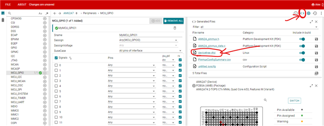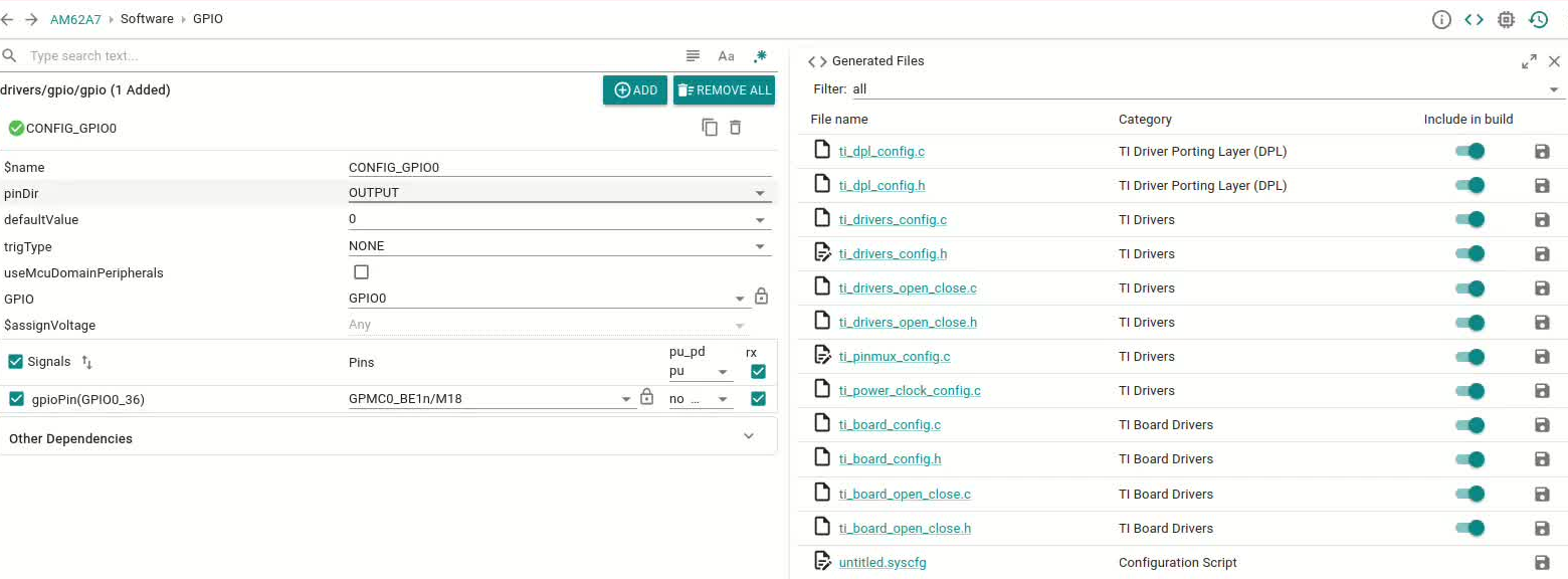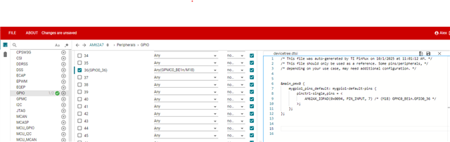 i need to using the GPIO0_36 to control the hardware device. and i have used the sysConfig to generate the code and dts file