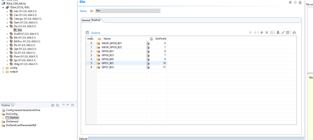 I have a question regarding the Dio handling using the MCUSW_01_03_00_10_CONFIG