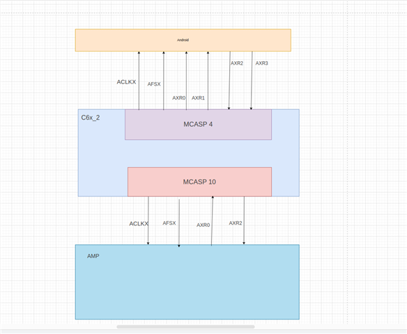 However, when I send int32_t data from the C6x_2 to the Android, the audio is distorted. Furthermore, when the Android sends audio data (slot size is 24 bits, effective data is 16 bits, and the C6x_2 receives it using int32_t) to the C6x_2, the audio is also distorted.