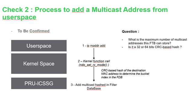 Based on datasheet AM64x, my understanding is when adding a multicast address from Linux userspace with ip maddr add,