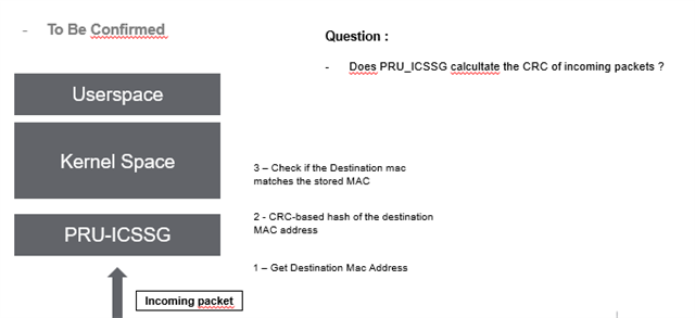 PRU generates a CRC based on the mac address that is store on FDB of the PRU, is that correct ?