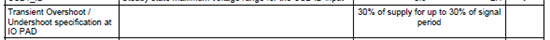 This sentence is said in the transient Overshoot/Undershoot specification at IO PAD. My understanding is that "signal period" stands for the period from this transition to "NEXT" transition (For Example, from High-to-Low to Low-to-High) on external signal. Is it correct? Please let me know.