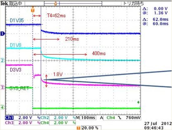I measure the power off sequence waveform as below, the 1.8V will reverse voltage to 3.3V when I turn off power. Can anyone give some hints on this portion and guide me to resolve this problem? Thanks a lot.