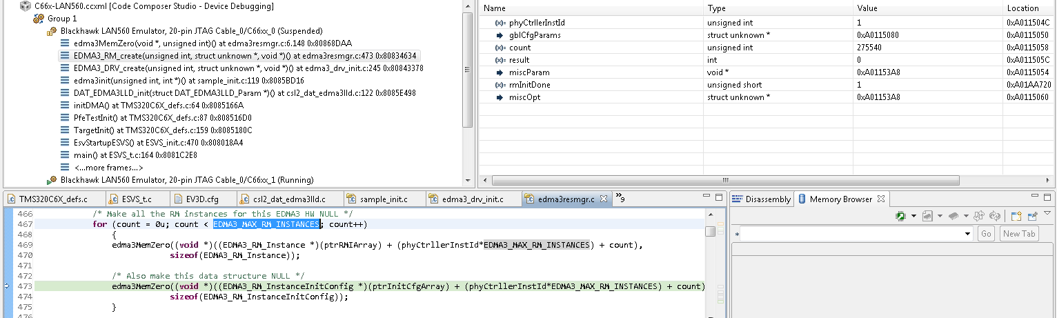 We are using cgt 7.4b2 with openmp sys/bios runtime 1.1.2.03_beta, and EDMA-LLD 2.11.5.